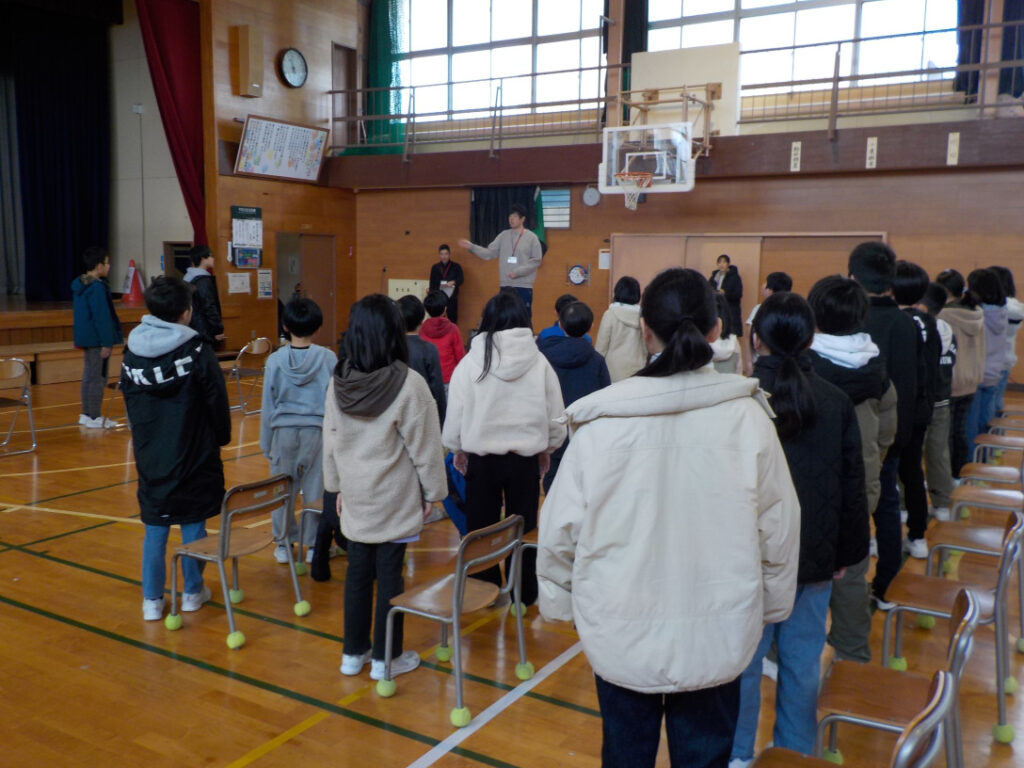 卒業式の流れを通しての練習がありました。流れに合わせて礼をしたり、式で歌う歌の練習をしたりしました。体育館は寒くてなかなか声が出ませんでしたが、練習していくと、口が大きく開いてステキな歌声が響くようになりました。当日も、みんなの声が体育館に響いて、心が1つになる歌唱を期待したいです。