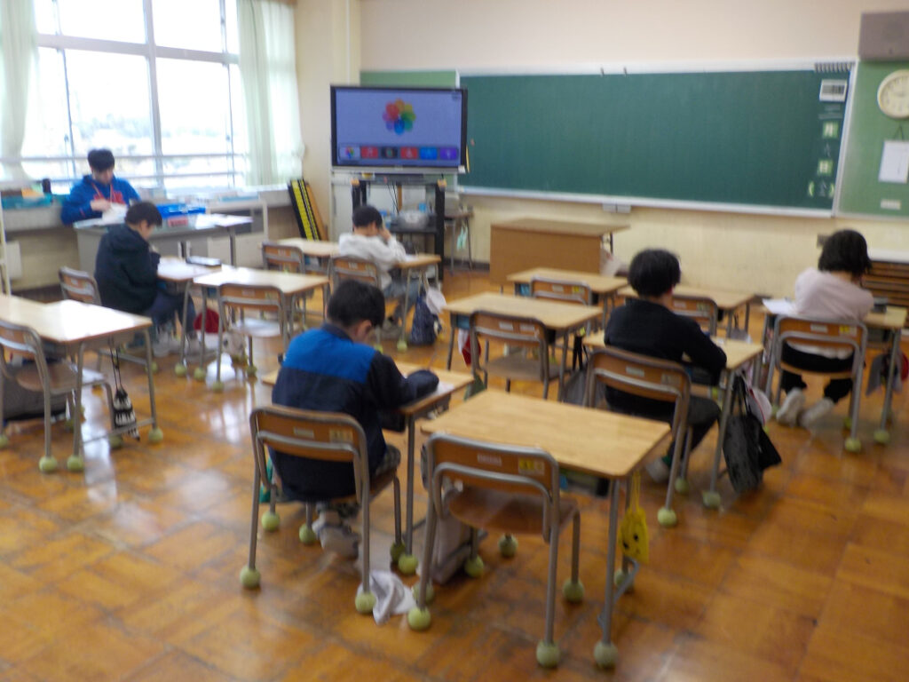 2年生、3年生は、それぞれ国語の聴き取りテストをしていました。読まれる文章をよく聴いて、テストにある問いに答えます。内容を聴き逃さず、集中して聴き取ることができたかな?