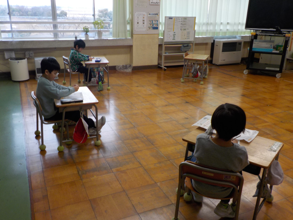 今日の1時間目の国語では、1~3年生がそれぞれ、まとめのプリントやテストをしていました。1年生は、カタカナの復習プリントをしていました。「シ」と「ツ」が混じった字になったり、覚えたはずのカタカナがスラスラ出てこなかったりして、苦戦している様子も見られました。外来語などカタカナで表記される言葉がたくさんあるので、今のうちに確実に覚えて、読み書きができるようにしておくとよいですね。