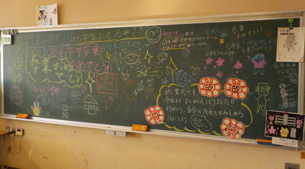 5・6年生教室の黒板も、背面掲示も…