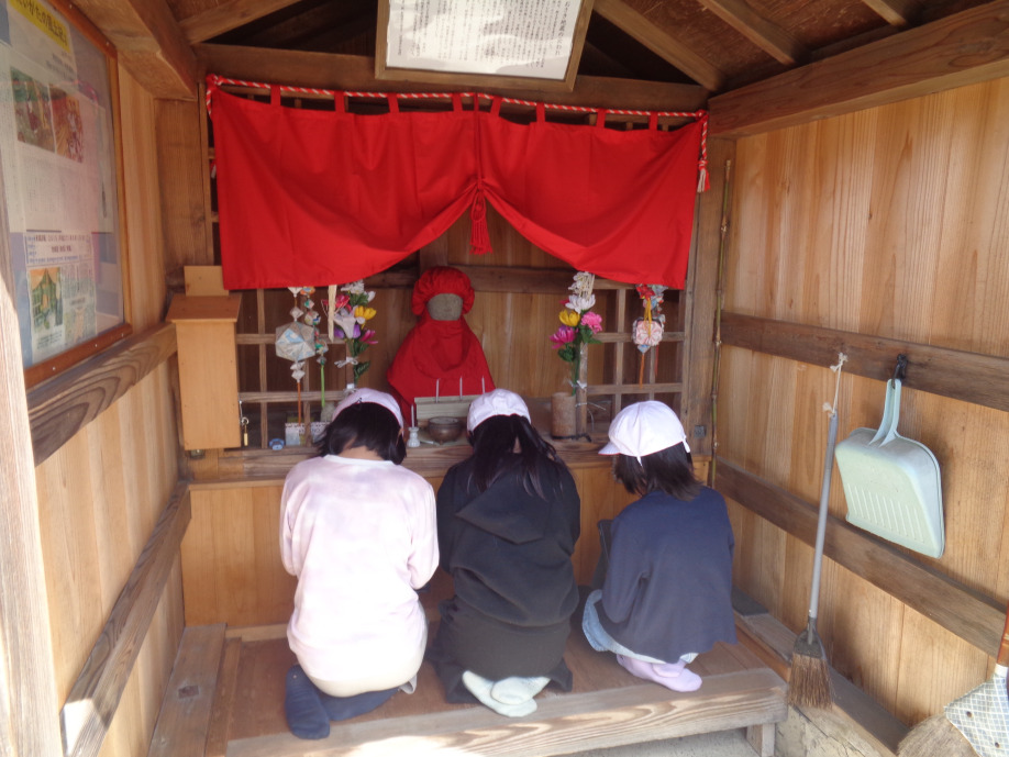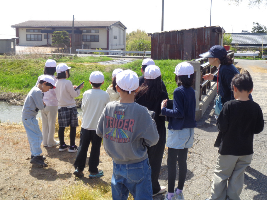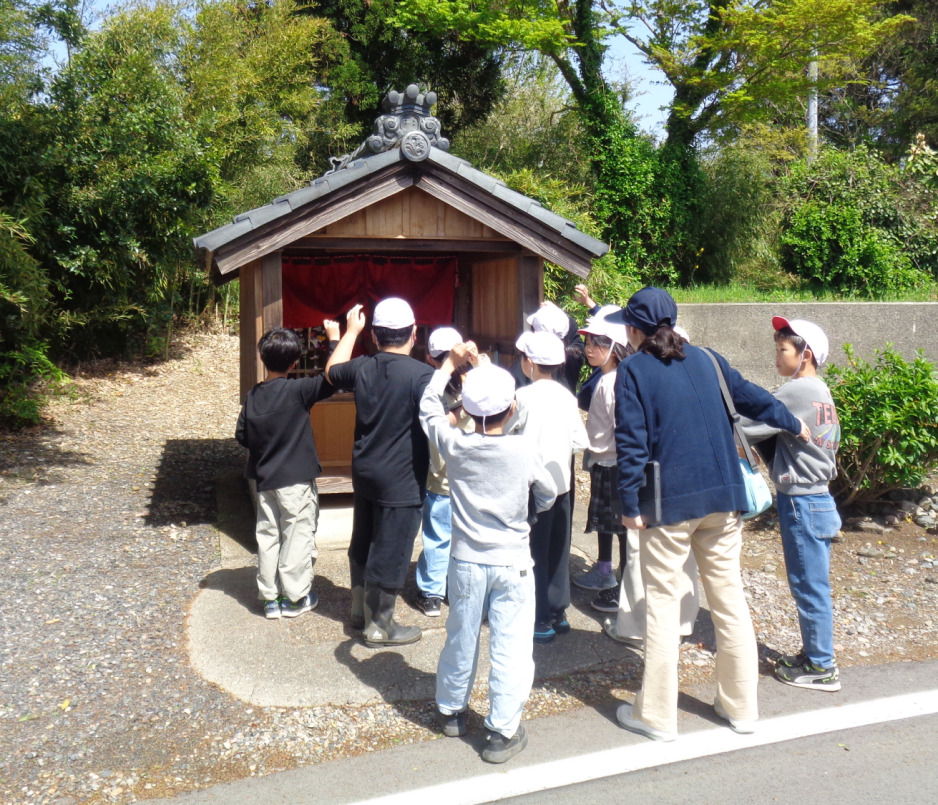 3・4年生は総合で、川とかかわりながら学習を進めていきます。今日は、学校の前に流れている西川の周辺を探索しました。川の様子や川にかかっている橋を見て回ると、お地蔵さんが祭られている祠を見つけました。どんないわれがある地蔵なのか…など、探索して調べたいと思ったことや疑問をもとに学習を進め、深めていきます。