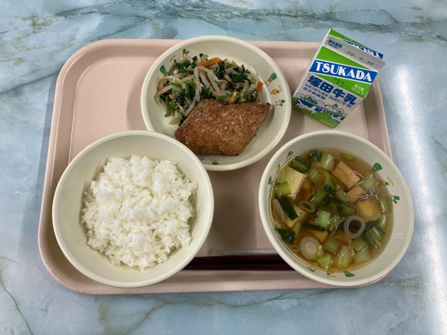 コシヒカリご飯、五目汁、サバの竜田揚げ、ツナ和え、牛乳 でした。