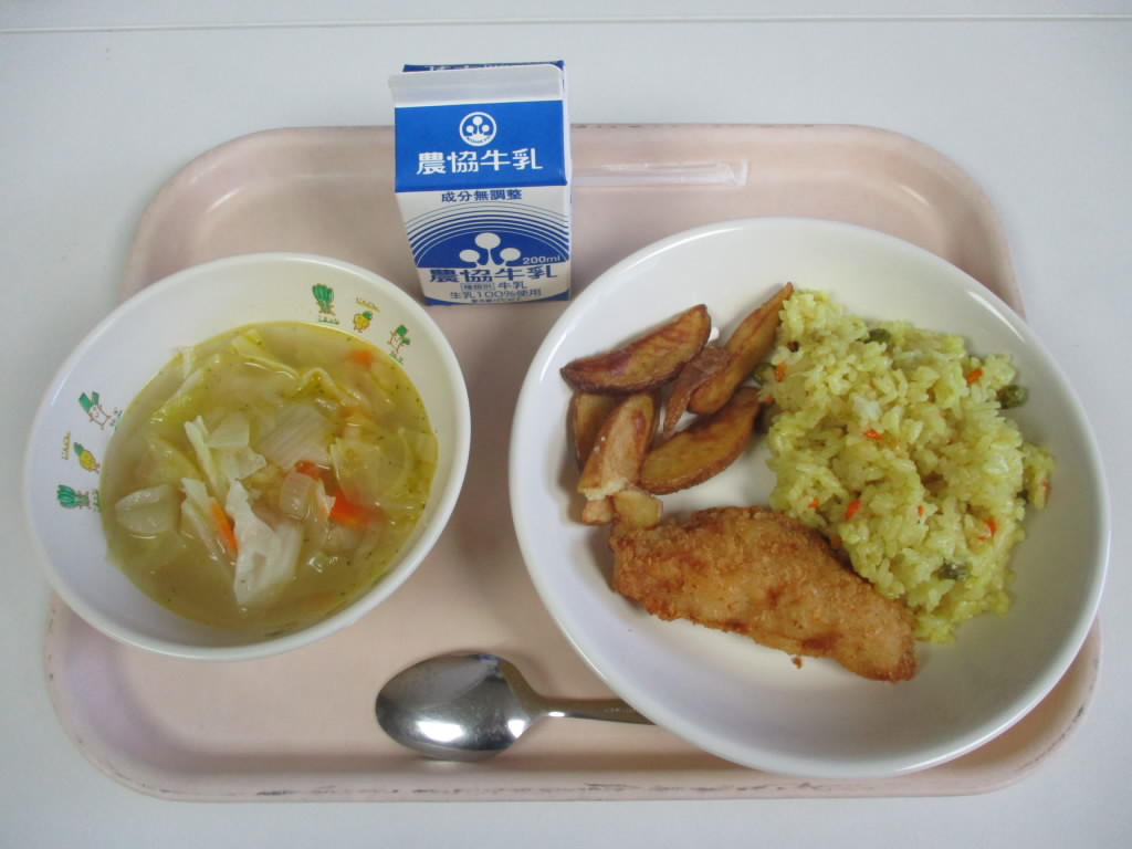 本日の給食は,オーストラリア風メニューが提供されました。フィッシュアンドチップスは,元々はイギリスの料理ですが,かつてイギリスの植民地になっていたことで,今はオーストラリアにも定着している料理です …