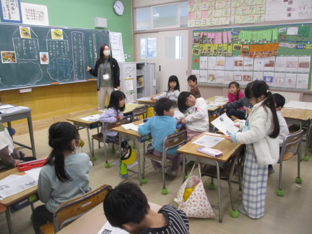 6年生は,1年生の朝の準備のお世話をした後に,朝活動の時間に大型絵本を読み聞かせたり,校歌を教えて一緒に歌ったりしています。やさしくて頼りになる6年生の姿をさっそく発揮してくれて「いいね!」