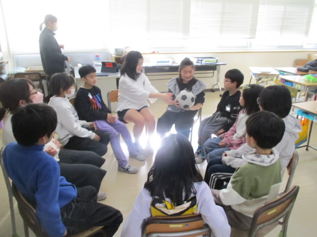 本日の昼休み,6年生の各クラス代表が1年生の教室に行って,楽しいゲームやクイズをして交流しました。なんでもバスケット,ハンカチ落とし,ポケモンクイズなど,6年生が1年生に楽しんでもらおうと一生懸命 …