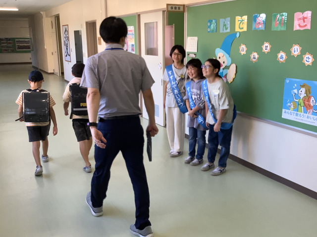 今週は,毎朝3年生が玄関であいさつ運動をしています。登校してくる人たちへ,さわやかに元気あおおぞらあいさつをして「いいね!