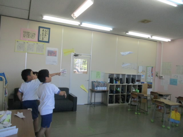 あるポプラ学級では,紙ヒコーキがブームになっています。これまで折りためてきた紙ヒコーキを教室内で夢中になって飛ばし合いっこしている姿が「いいね!」