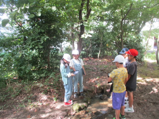 3年生は総合の学習で,秋のビオトープマップを作る学習をしています。秋らしい植物や生き物を探して地図にポイントします。夜中の大雨でできた水たまりの中をじっくりと観察している姿が「いいね!」