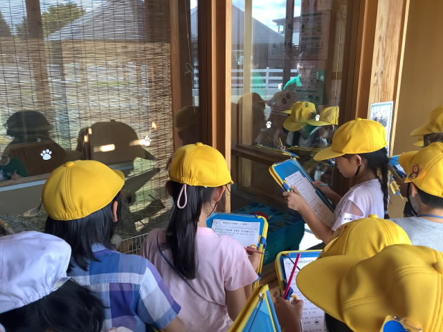本日1年生が,小学校で初めて1日かけてバスを使っての校外学習に出掛けてきました。秋晴れに恵まれ,思う存分活動を満喫しました。行先は「こどもそうぞうセンター」「どうぶつふれあいセンター」「大江山公園」の3か所です。