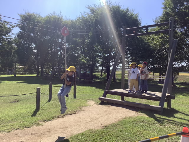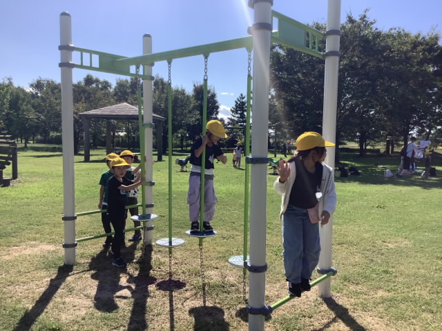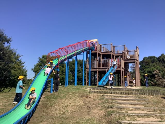 午後からは大江山公園へ行きました。青空の下でおいしいお弁当を食べて,広い公園の大きなたくさんの遊具で思いっきり遊ぶことができて「いいね!」