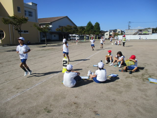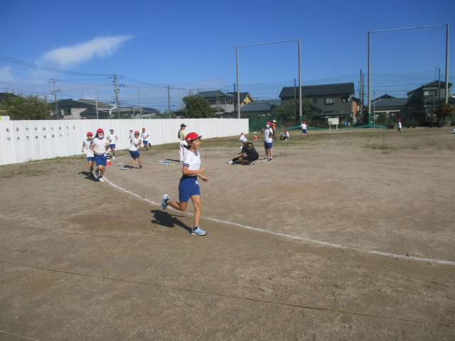 5年生は体育で持久走,チャレンジランニングの練習を始めました。5分間でどれくらいの距離を走れるかを測定していきます。まずは自分のペースで走ってみて,それを基点にして,記録を伸ばしていけると「いいね!」