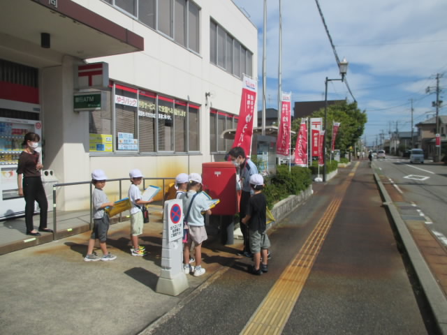2年生は,3日に生活科の学習でまち探検に出掛けてきました。今回はグループ別に選んだ訪問先写真は郵便局)で,見付けたことや聞いたことをたくさんメモしている姿が「いいね!」