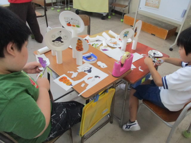 アカシア学級では,生活単元の「ハロウィンを楽しもう」学習をしていました。ハロウィンらしく飾り付けながら,的当て,ボーリング,輪投げのゲームを楽しく作っている姿が「いいね!」