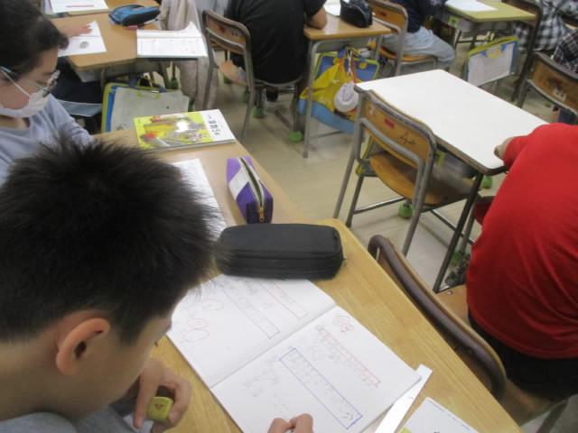 1年生算数の3口の計算も進んでいます。今日は,ひき算にも挑戦していました。たし算と同じように前から順番に正確に計算している姿が「いいね!」