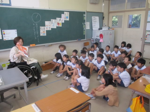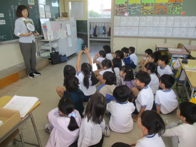 本日,1年生に向けて,今年度初めて読み聞かせボランティア「お話たまてばこ」の方からの読み聞かせがありました。これまで図書館司書や担任の先生からの読み聞かせはありましたが,「たまてばこ」さんの読み聞かせは初体験でした。3クラスとも,情感たっぷりの読み聞かせにしっとりと浸っている姿が「いいね!」