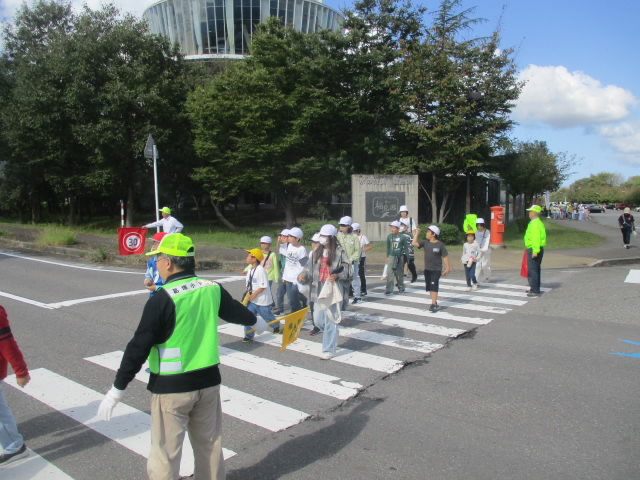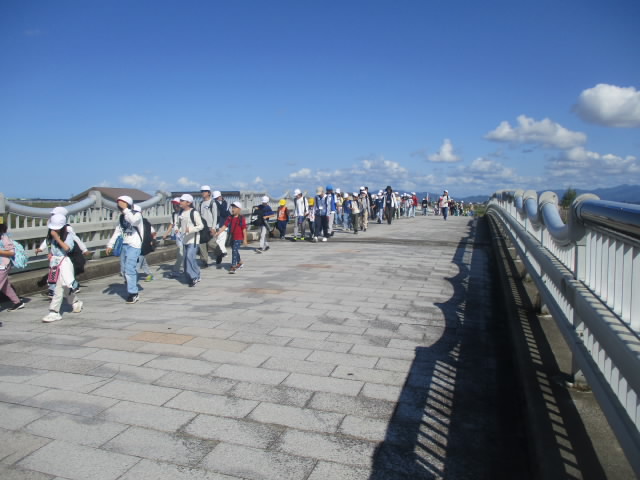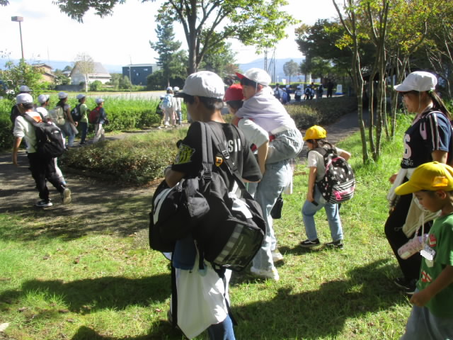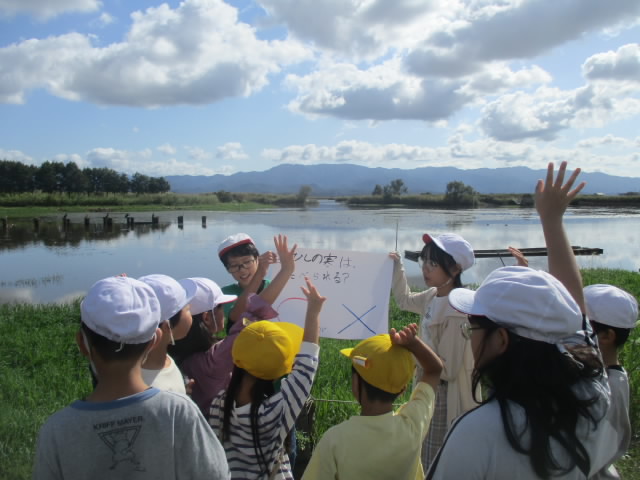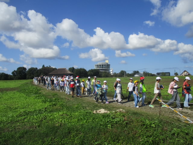 本日,すばらしい秋の青空の下,あおぞら福島潟アドベンチャーが実施されました。縦割りのあおぞら班ごとに,6年生がリーダーシップを発揮しながら往復6キロの道のりを参加者全員が歩き切りました。福島潟では,5年生が出す福島潟の植物や動物に関するクイズを解きながら,秋の自然とたっぷり関わりました。低学年のリュックを持ってあげたり,おんぶをしたあげたりなど,4つのあいの一つ「ささえあい」の姿がたくさん見られて「いいね!」