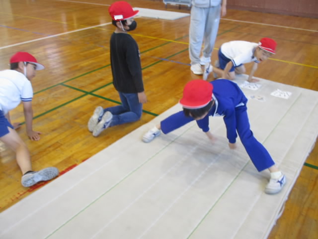 3年生は体育のマット運動で,開脚前転に挑戦していました。この技は,股関節の柔らかさも影響するので難しい技です。二人組でヘルプしている姿が「いいね!」