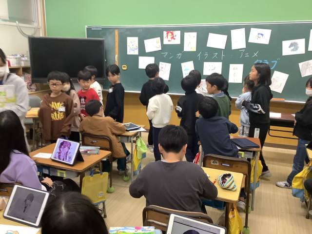 本日のクラブ活動の時間に,3年生が来年度に向けて見学をしました。クラスごとに,11のクラブ全て回りました(写真は科学実験クラブ・マンガイラストクラブ・ダンスクラブ)。楽しそうに夢中に活動する上級生を見て,4年生になるのが楽しみになると「いいね!」