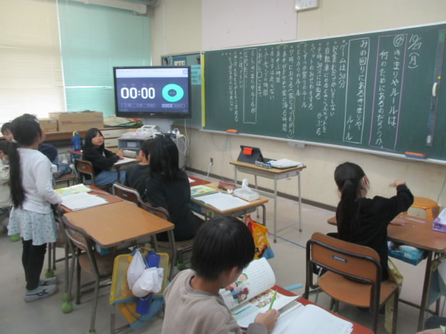 3年生は,道徳で「きまりやルールは何のためにあるのか」という課題で学習していました。まず,身の回りのきまりの例を挙げました。そして,このきまりがなくなったらどうなるかについて,真剣に考え,積極的に発言している姿が「いいね!」