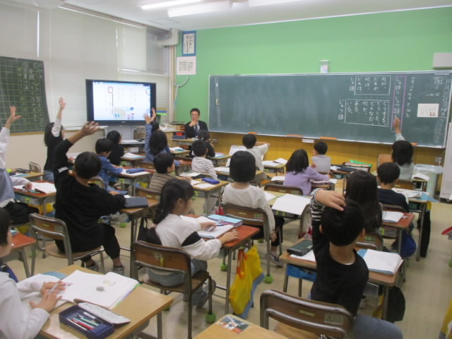 2年生は,国語で「主語と述語」について学習していました。まずは,教科書の例文から主語と述語とはどれかを選びました。次に,「○○は」「(どうした)」という形の文章を自分で考えて作りました。これからこの2つを意識して文を書けると「いいね!」