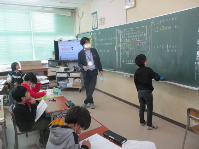 3年生算数の概数の学習が佳境に入っています。今日は,東京都の人口13980000人は,10000と1000がそれぞれいくつ集まった数なのかについて考えていました。単位を確認しながら,説明している姿が「いいね!」