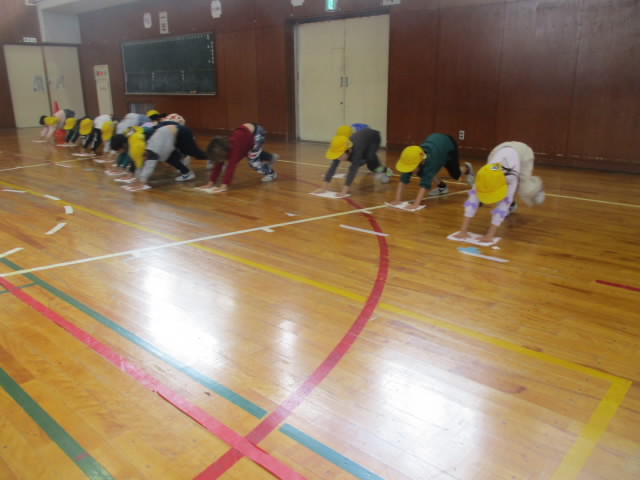 本日の昼休み,ボランティア委員会の主催で雑巾がけレース低学年の部が行われました。体育館の横を一気に雑巾がけで走り,3位以内を表彰しました。レースをしながら体育館もきれいになって「いいね!」