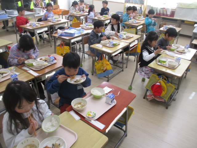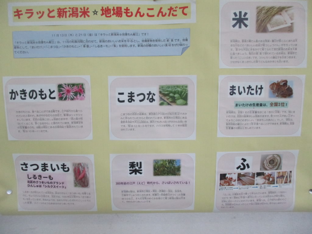 本日の給食は,新潟地場産をふんだんに使った献立が提供されました。じっくりと味わって(写真は1年生),ふるさと新潟の味を堪能できて「いいね!」
