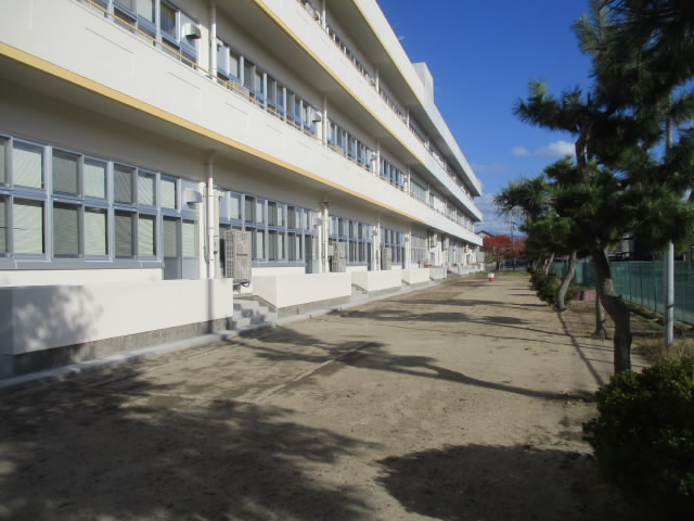 7月下旬から始まり4か月間続いた校舎の大規模改修工事が本日で完全に終了しました。足場や鉄板,プレハブ小屋がすべて撤去されました。来週から,横庭やグラウンドのバックネット側でも広々と活動したり遊んだりできて「いいね!」