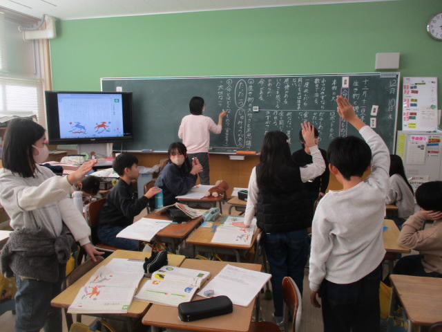 4年生は道徳で「生き物と機械」という教材を読み,本物の犬と機械の犬を比べながら命の大切さについて真剣に考えていました。命は一回失ったら元に戻らないという大事なことに気付くことができて「いいね!」