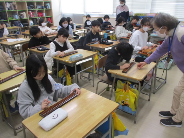 4年生の算数は,そろばんの学習が始まりました。今日は,まず昨年の3年生で学習した基本的な珠の動かし方や指使いを復習しました。そろばんの先生の話をよく聞きながら,一つ一つ確認して珠をはじいていました。最後は,繰り上がり,繰り下がりの計算もできるようになって「いいね!」