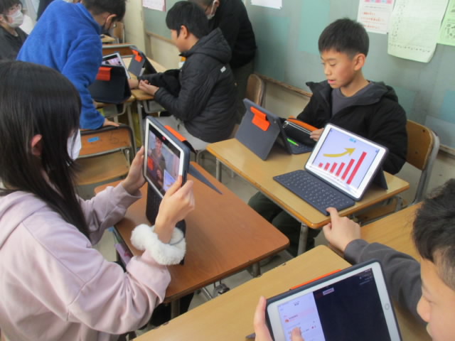 6年生の国語で取り組んだいる委員会プレゼン作りも進んでいます。発表原稿を書き終え,使う資料も揃えました。今は,リハーサル用の録画を撮って本番に備えています。本番の発表で,プレゼンを見た4・5年生が自分たちの委員会にたくさん立候補してくれると「いいね!」