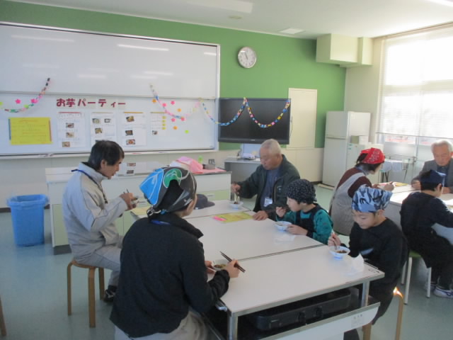 ポプラ学級では,自立活動でおいもパーティーを開いていました。畑で栽培・収穫したさつまいもを使って大学いもを作って,畑の先生たちをお招きして,一緒においしそうに食べている姿が「いいね!」