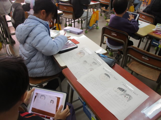 1年生は,生活科で「ぼく・わたしがにこにこするとき」「かぞくがにこにこするとき」をカードに書いて,タブレット上でお互いに紹介していました。冬休みにそれを意識して,みんながにこにこする冬休みになると「いいね!」