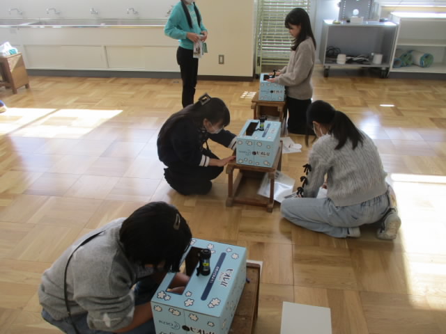 今週は,保健委員会主催の健康週間でもあります。その取組の一つに,手洗いチェックを昼休みに行っています。希望者が会場の図工室に行って,手洗い後,ブラックライトを当てて,手の平・甲に菌がどれくらい残っているかを調べます。どこを注意して手を洗えばいいか分かって「いいね!」