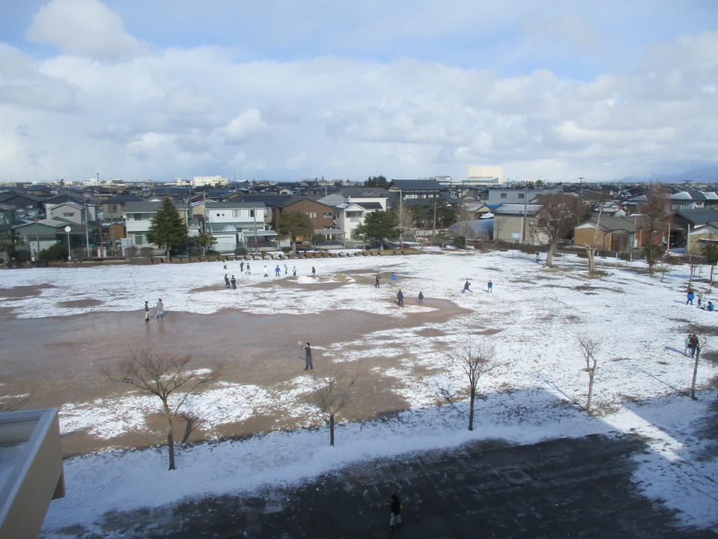 昨日から二十四節気の大寒となり,どれくらい雪が降るか心配でしたが,今日の日中は,予想外に穏やかで,昼休みは青空ものぞいていました。多くの子どもたちは寒さに負けずグラウンドに出て,サッカーや雪合戦,大谷グローブでキャッチボールなど,元気に遊んでいて「いいね!」