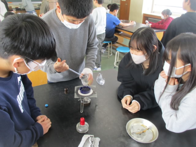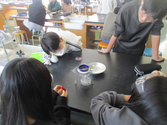 6年生の理科は,水溶液の性質の学習も佳境に入っています。今日は,蒸発乾固の実験です。スチールウールが溶けた塩酸を蒸発させて出てきた物質は果たしてスチールウールか?興味をもって調べている姿が「いいね!」