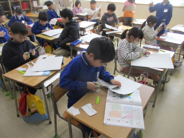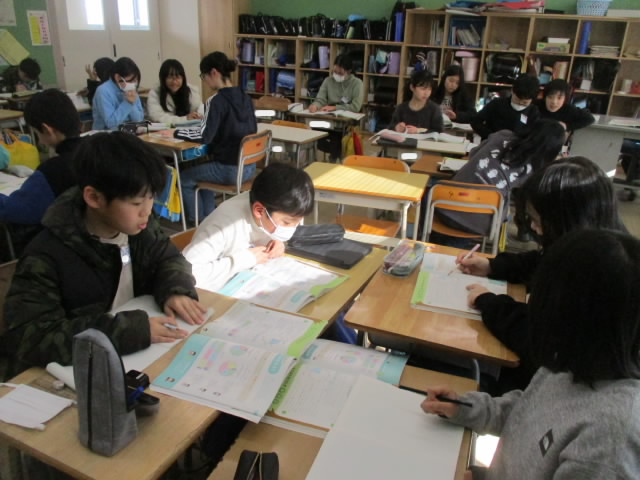 5年生は算数で,割合の問題をグループで教え合いながら解いていました。割合は,5年生の算数で最難関の学習と言われます。「難しい」とつぶやきながら解き合っている姿が「いいね!」