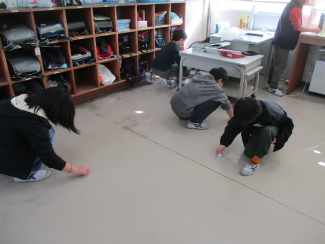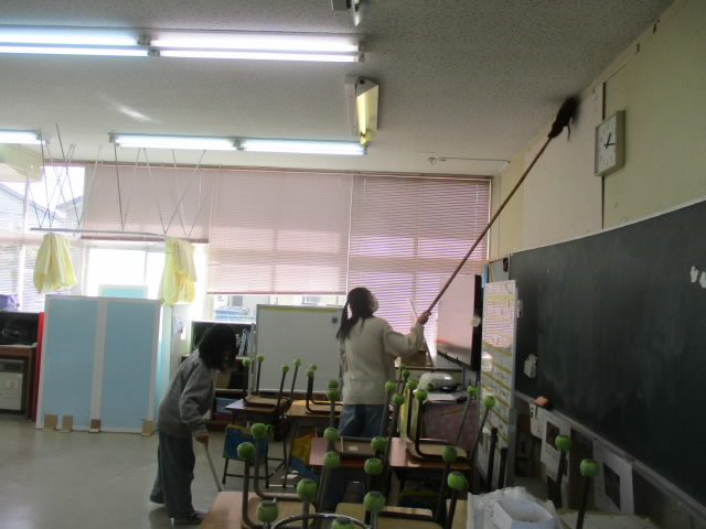 今週の清掃は,学年末大清掃で,いつもより時間が5分長く設定しています。長ぼうきで天井のほこりをはいたり,メラニンスポンジで床の汚れを落としたりと一生懸命に取り組んでいる姿が「いいね!」