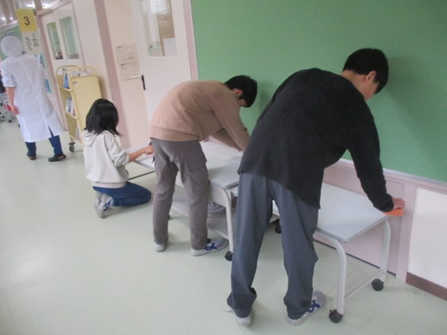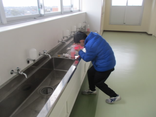 6年生が卒業プログラムの一環として,教室の給食配膳台を磨く活動をしていました。明日の最後の給食が,きれいな配膳台で準備できて「いいね!」