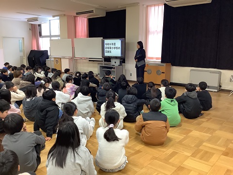 16日間の冬休みを経て、子どもたちが久しぶりに登校しました。 気温等を考慮し、体育館で集まることはせず、オンラインで講話等を聞きました。 冬休み明け初日ということもあって、学年集会を開き、気 …