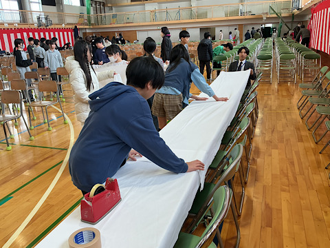 「郷土食を考える会」の皆様をお招きして葛塚で食べられてきた福島潟の食材を中心とした郷土食を紹介していただきました。「いとこ煮」「大根と川エビの酒粕煮」「オニバスの酢の物」といった料理の数々には、福島潟のレンコン、舟を使ってとっていた川エビ、オニバス等の食材が使われていたそうです。また、葛塚縞で織られた作業着なども見せていただきました。福島潟の生活、食文化について一層理解を深めることができました。