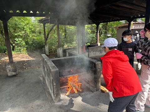 さあ、鍋を火にかけました。上手にできるかな。うちわであおいで強火をキープしています。