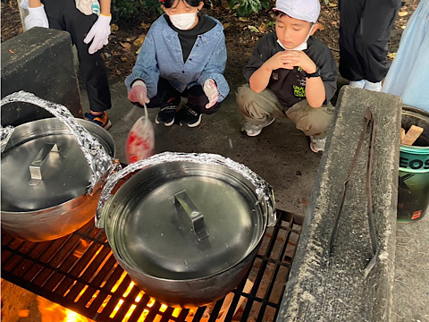 炎と戦いながら、かまどの管理をする子、鍋や道具類を洗う子、調理を担当する子etc.