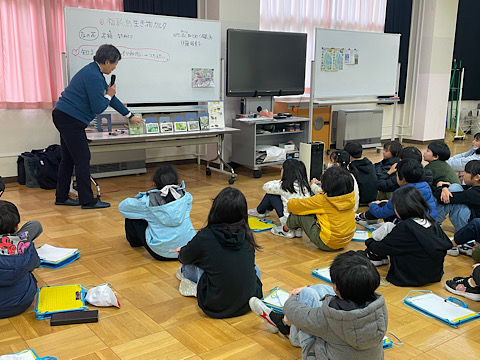 校内に残ったグループは、NPO法人ねっとわーく福島潟から講師をお迎えし、福島潟の生き物についてまとめた取組について紹介していただきました。
