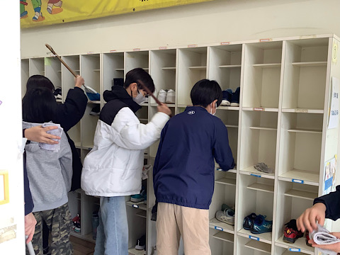また、靴箱の清掃や教室環境の整備等、身の回りをきれいにする姿も見られました。
