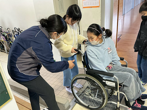 車椅子を利用する人と車椅子を押す人。二つの立場を経験した子どもたち。