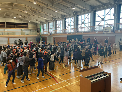 体育館では、一堂に会し、ダンスをしたりゲームをしたりして楽しみました。