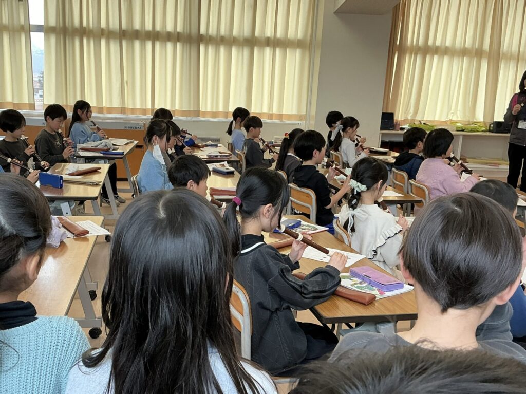 音楽の授業では、リコーダーの演奏を聴かせてもらいました。きれいな音色と息の合った演奏を聴いて、教室に帰ってからも「3年生から練習して、あんなに上手に吹けるようになるの!」「早く練習してみんなで合奏したいな!」と、楽しみな気持ちが膨らみました。