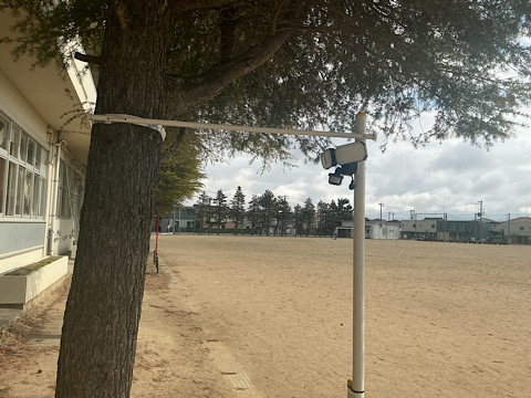 市にも伝えると同時に、救済措置として何かできないかと思案した結果、センサー付きライトを校舎に沿って3箇所に設置してみました。