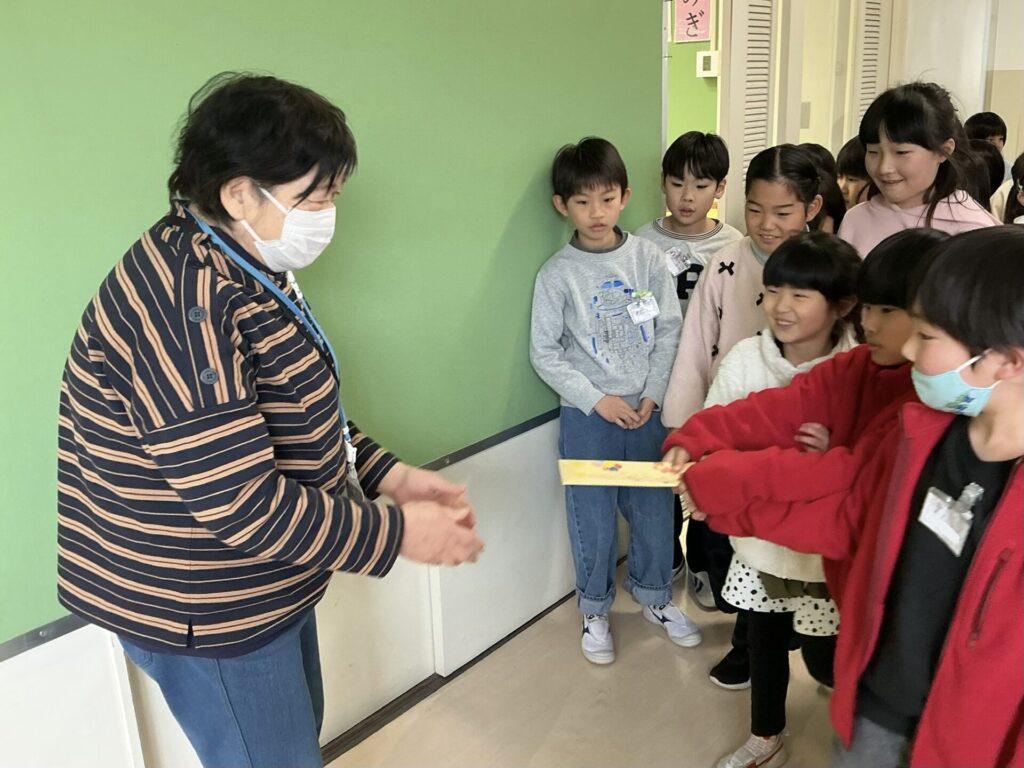 たくさんの「ありがとう」を届けた子どもたちは、「こちらこそありがとう!これからも頑張ってね!」と、応援の言葉をいただきました。もうすぐ3年生です。支えてくれる人達の思いを味方に、いろいろなことに挑戦する姿を期待しています!